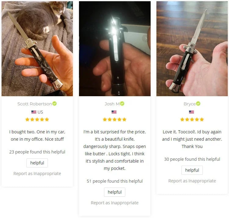 Esta joia acessível apresenta uma lâmina de baioneta polida como espelho e pau-rosa castanho, cabos com pinos de latão e inserções de titânio banhadas a ouro. Esta é a grande adaga de 25 cm com "interruptor de lâmina" que já viu inúmeras vezes no grande ecrã.